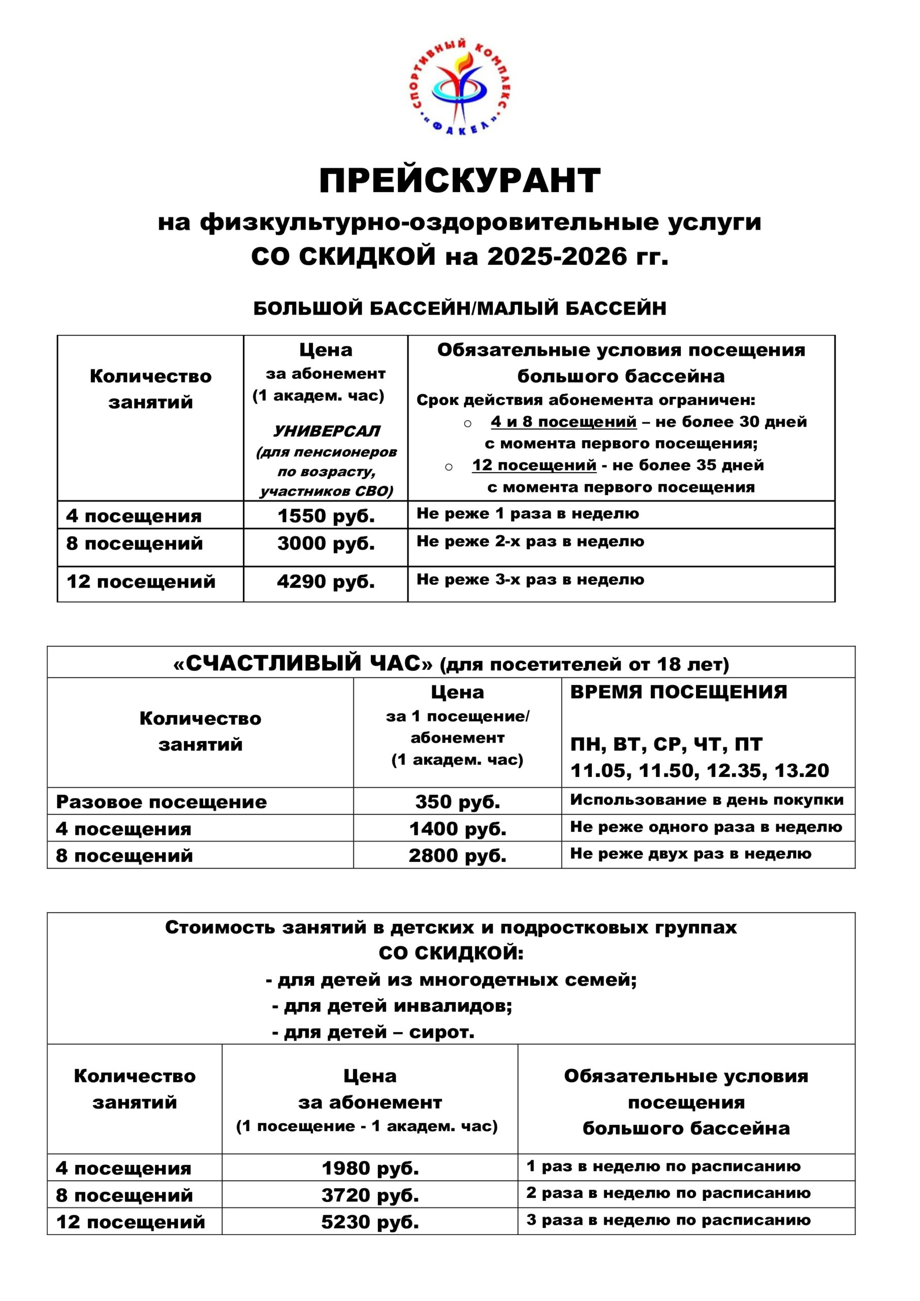Прейскурант взрослые